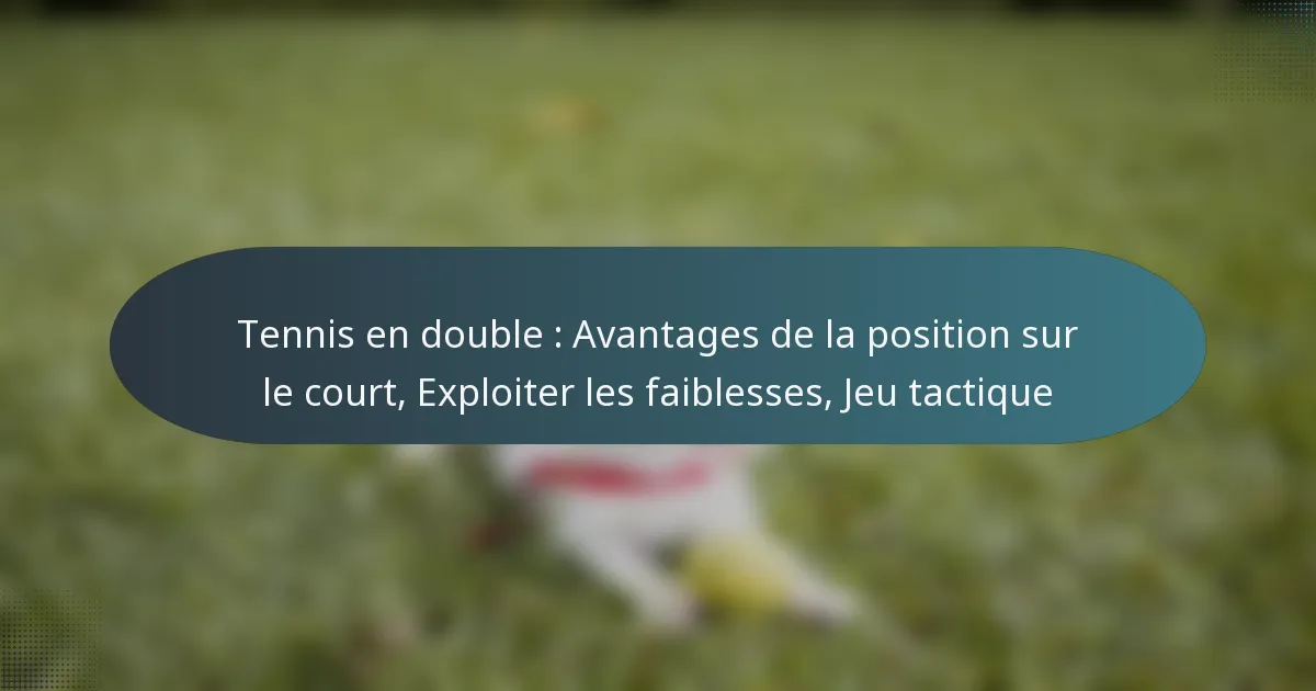 Le tennis en double nécessite une compréhension aiguë du positionnement sur le court pour améliorer la coordination de l’équipe et maximiser la couverture. En se positionnant stratégiquement, les joueurs peuvent exploiter les faiblesses de leurs adversaires et créer des opportunités de marquer. Une communication efficace et un jeu tactique sont essentiels pour tirer parti des vulnérabilités et sécuriser la victoire sur le court.