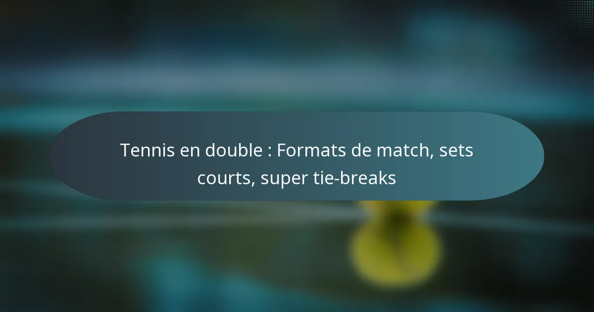 Le tennis en double comprend une variété de formats de match qui peuvent grandement influencer la dynamique du jeu. Ces formats, y compris les matchs standards, les sets courts et les super tie-breaks, sont conçus pour s’adapter à différents environnements compétitifs et aux préférences des joueurs. Les sets courts accélèrent le jeu en exigeant que les joueurs remportent un set en atteignant un nombre spécifique de jeux, tandis que les super tie-breaks ajoutent de l’excitation en prolongeant le tie-break à 10 points, garantissant une fin palpitante.
